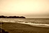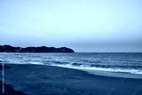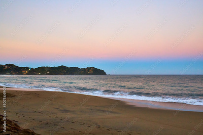 beach at sunrise with beautiful sky with orange and blue colors and waves in sayulita nayarit