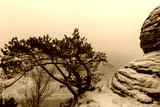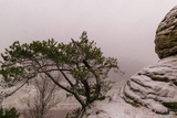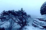 snowy landscape of the Elbsandsteingebirge with bastion bridge (Saxon Switzerland, Germany)