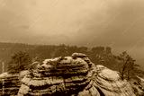 snowy landscape of the Elbsandsteingebirge (Saxon Switzerland, Germany)