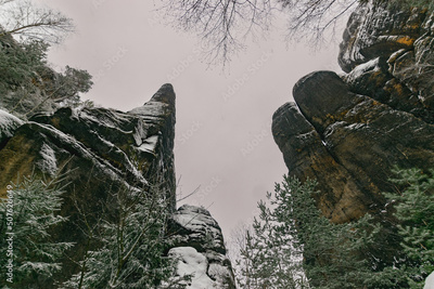 snowy landscape of the Elbsandsteingebirge (Saxon Switzerland, Germany)
