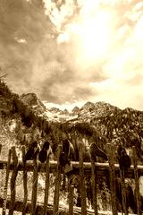old walking boots on the fence in the alps (Tristach, Lienz, Tyrol, Austria)