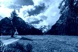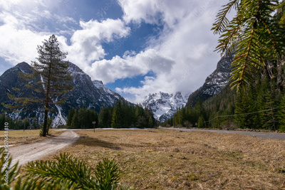 Alpine scenery with snow-covered mountains (Dolomites, Italy)