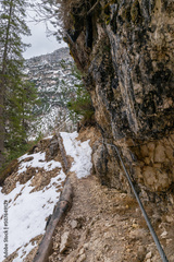 Hiking trail in the rocks of the Dolomites