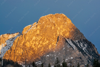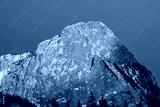 snow covered rocks in the dolomites during sunset