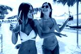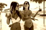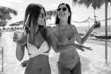 Happy young women friends enjoying summer vacation on the beach. People travel holiday fun concept