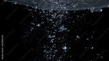 Blurred images of close-up soda water bubbles fizzing up or splashing or sparkling like a exploding of a bomb on black background for represent refreshing from carbonated drinks menu.