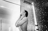 Beautiful woman taking shower in her bathroom.