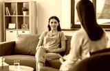 psychology, mental health and people concept - young woman patient and woman psychologist at psychotherapy session