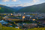 Panoramic view of the outskirts of Vanadzor at sunset, Armenia