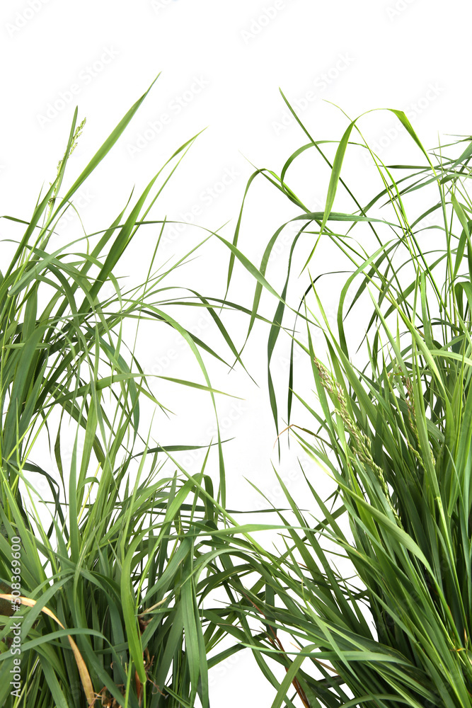Bunch of green grass isolated on white background. Grass fed, fresh grass foliage.