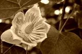 Tulip tree or Liriodendron tulipifera ornamental tree in bloom with yellow and orange flowers on branch