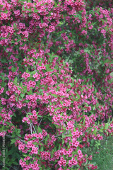 Weigelia bush in bloom with beautiful pink flowers in the garden on springtime