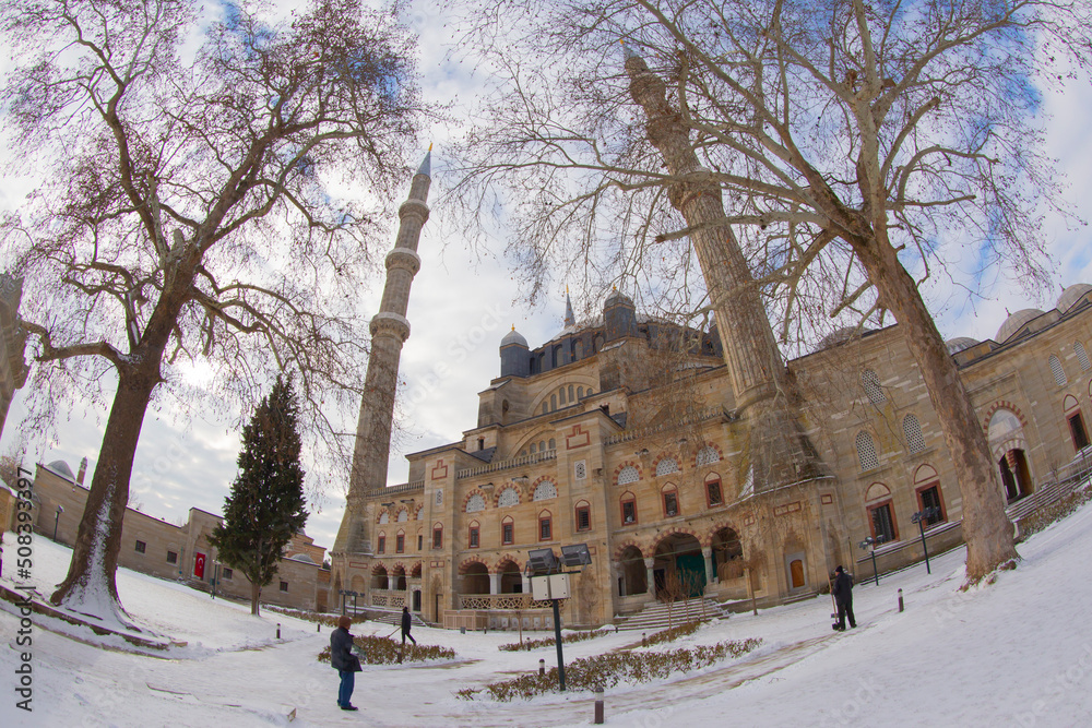 Interior of the Selimiye Mosque. The UNESCO World Heritage Site Of The Selimiye Mosque, Built By Mimar Sinan In 1575