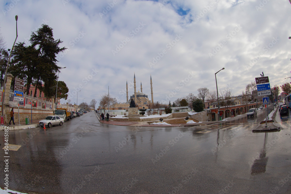 Selimiye Mosque view in Edirne City of Turkey. Edirne was capital of Ottoman Empire.