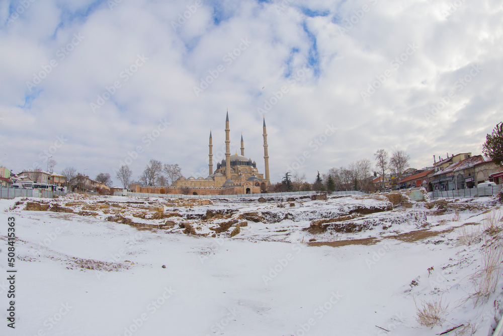 Selimiye Mosque view in Edirne City of Turkey. Edirne was capital of Ottoman Empire.