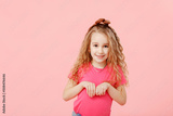 Beautiful little girl in Easter bunny ears on a pink background. Seasonal sale and discount. Shopping and retail. Playful mood. Preparing for Easter holiday. Spring holidays. Happy easter