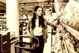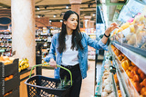 Young woman doing grocery shopping in supermarket