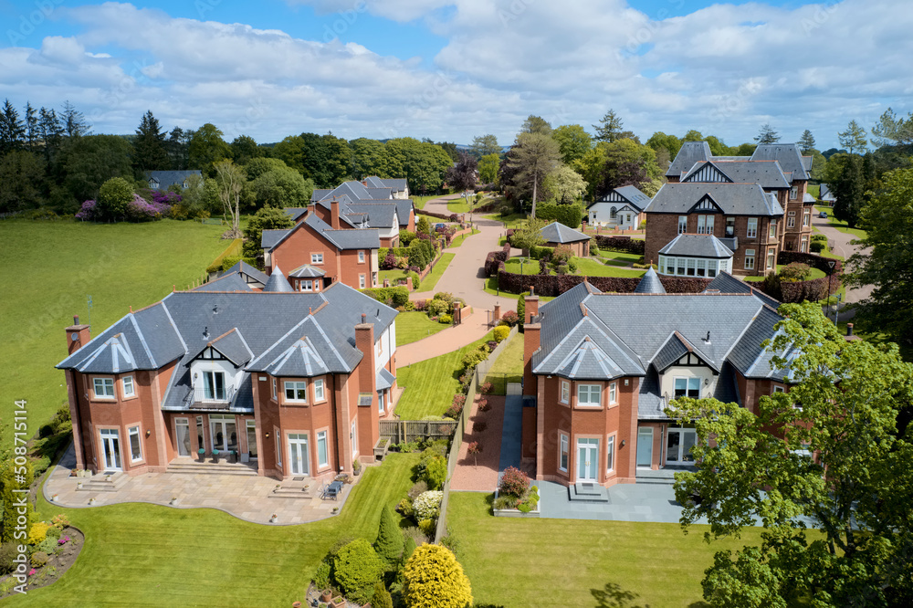 Luxury countryside rural village aerial view from above in St Andrews Scotland UK