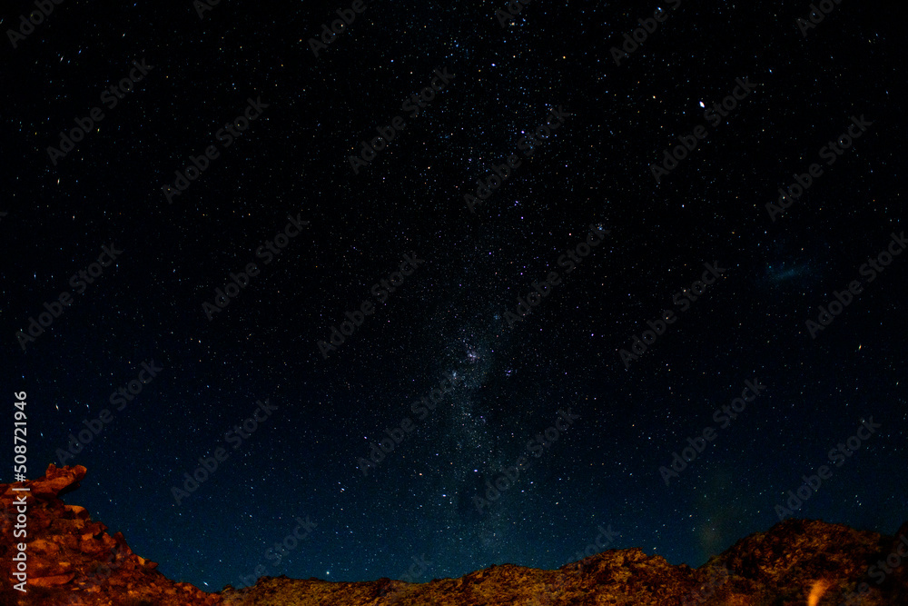 Night sky stars, Milky way galaxy with clouds. Moving and rotating stars. Photo was made in southern hemisphere.