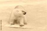 Wild polar bear cub on pack ice in Arctic sea close up