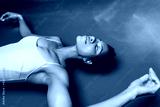 Beautiful middle-aged African American woman floating in tank filled with dense salt water used in meditation, therapy and alternative medicine.