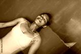 Beautiful middle-aged African American woman floating in tank filled with dense salt water used in meditation, therapy and alternative medicine.