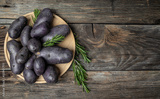 Organic purple sweet potato. Raw sweet potatoes or batatas. pomoea batatas. Batata potato. vegan food ingredient. banner, menu, recipe place for text, top view