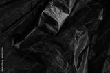 Closeup crumpled single use or non recyclable black color plastic trash bag made from polyethylene texture background