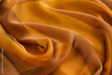 Background from silk fabric of yellow brown color. Sheer fabric creates a textured background. Textile in the form of silk.