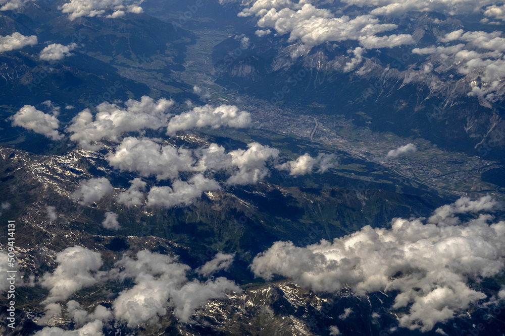 Innsbruck valley aerial panorama from airplane
