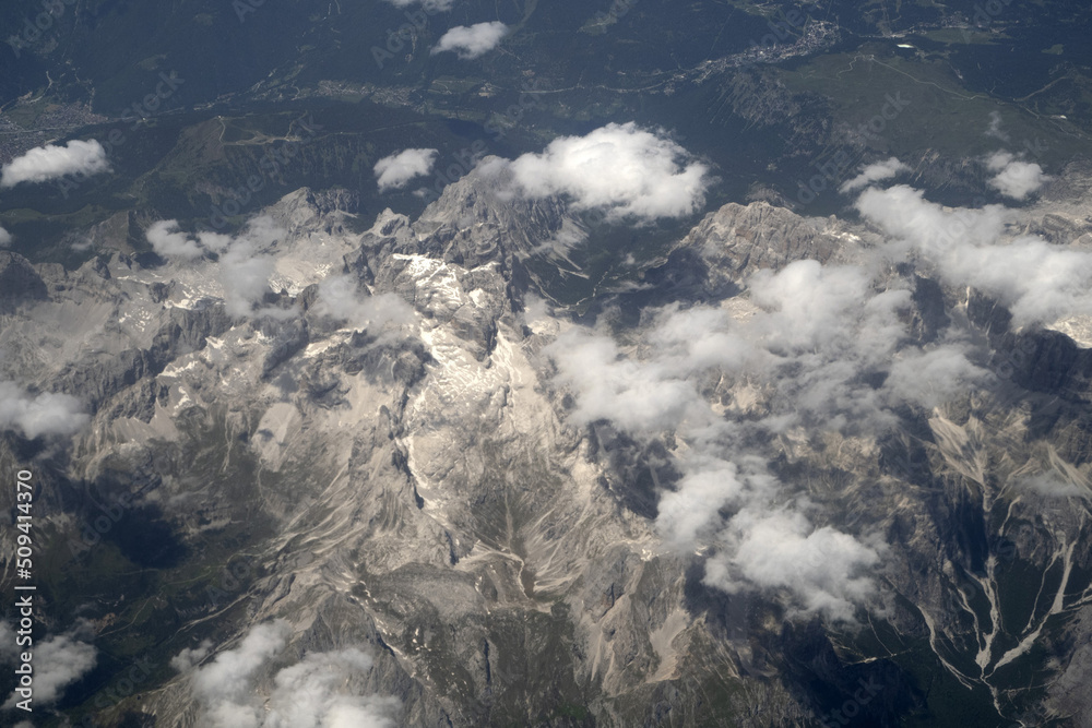 Dolomites mountains near trento aerial panorama from airplane