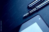 tablet, fountain pen.
