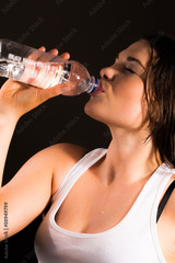 Sports women drinking bottle of water