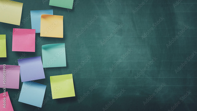 Sticky notes on a chalkboard