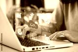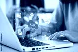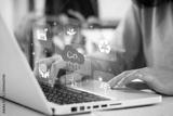 women using laptop for working technology and business Net zero and carbon neutral concept. Renewable energy-based green businesses can limit climate change and global warming. Reduce CO2 emission.