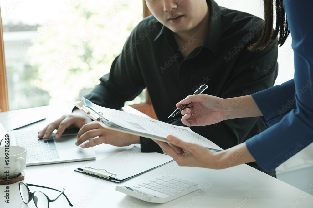 Businessman teamwork meeting and discussing the investment data and report graph.
