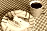 Plate of Slices of Gata, Armenian Traditional Sweet Soft Bread with a Cup of Hot Turkish Coffee