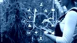 Agriculture technology farmer using tablet computer analysis data and visual icon. Business agricultural cannabis farm