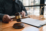 Lawyer or judge holding Hammer prepares to judge the case with justice, and litigation, scales of justice, law hammer, Legal consulting services, Concept of litigation, and legal services.