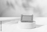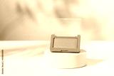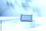 Face Powder or Eyeshadow container as decorative cosmetics on podium.