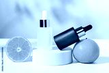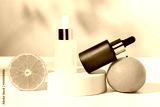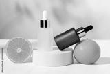 Serum bottle with dropper and slice of orange, ingredients for skin care and treatment vitamin on white background, Natural cosmetics concept.
