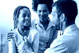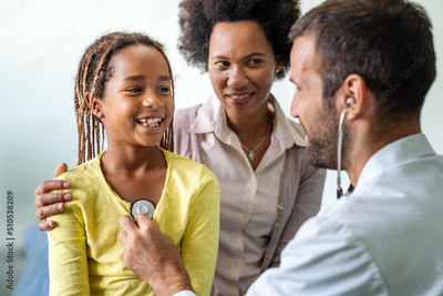 Doctor examines a child with stethoscope in examination room. Healthcare people children concept