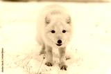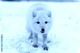 Wild arctic fox (Vulpes Lagopus) in tundra in winter time. White arctic fox.