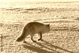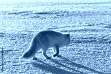 Wild arctic fox (Vulpes Lagopus) in tundra in winter time. White arctic fox.