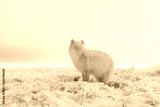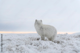 Wild arctic fox (Vulpes Lagopus) in tundra in winter time. White arctic fox.