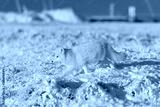 Arctic fox (Vulpes Lagopus) in winter time in Siberian tundra with industrial background.