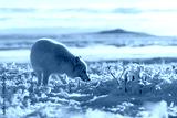 Wild arctic fox (Vulpes Lagopus) in tundra in winter time. White arctic fox.
