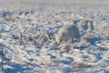 Wild arctic fox (Vulpes Lagopus) in tundra in winter time. White arctic fox.