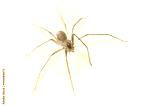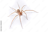 Closeup picture of a male of the Mediterranean recluse spider Loxosceles rufescens (Araneae: Sicariidae), a medically important spider with cytotoxic venom photographed on white background.