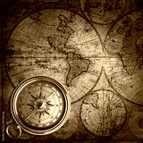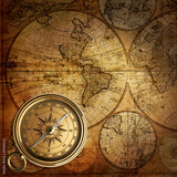 old compass on vintage map 1746